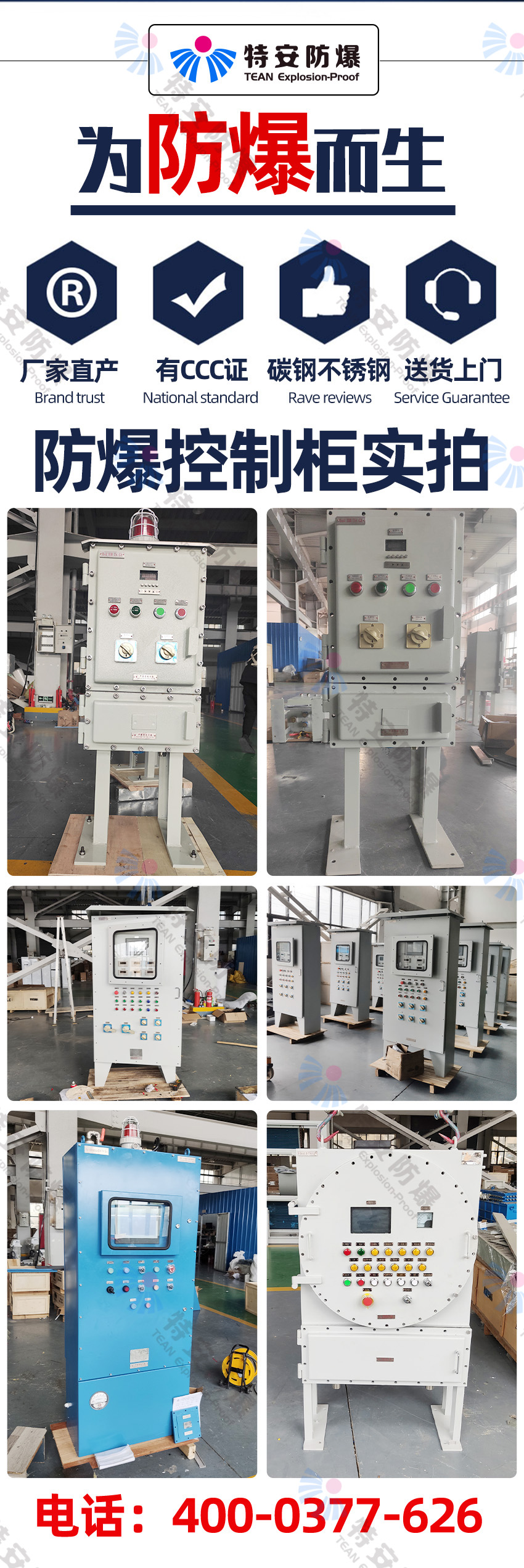 特安防爆電氣有限公司作為一家專(zhuān)業(yè)科研與開(kāi)發(fā)、制造、銷(xiāo)售防爆電氣控制柜廠(chǎng)家, 防爆控制柜通過(guò)防爆電氣產(chǎn)品質(zhì)量監督檢驗中心認證,如您需要購買(mǎi)防爆電氣控制柜或者了解防爆電氣控制箱(柜)價(jià)格,請來(lái)電咨詢(xún),我們將竭誠為您服務(wù)!