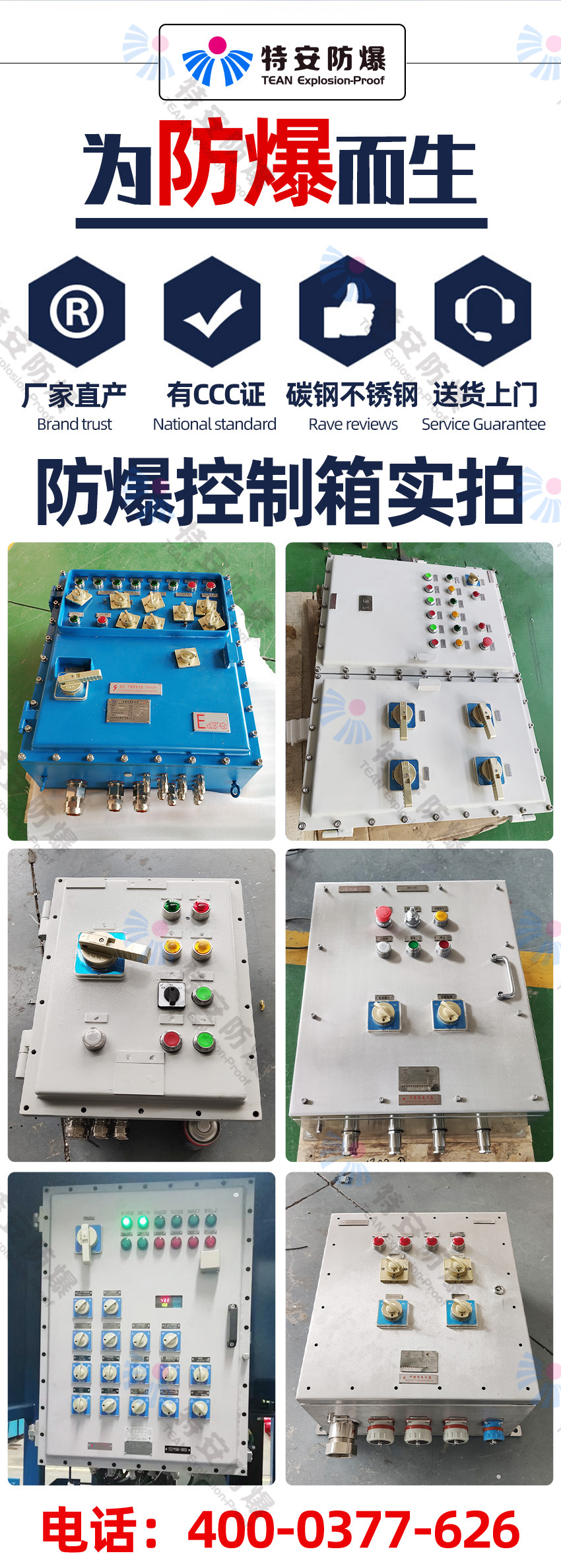 防爆型的性能符合GB3836.1-2000<爆炸性環(huán)境用防爆電氣設備通用要求>及JB/T8529-1997<隔爆型控制箱技術(shù)條件>的規定。